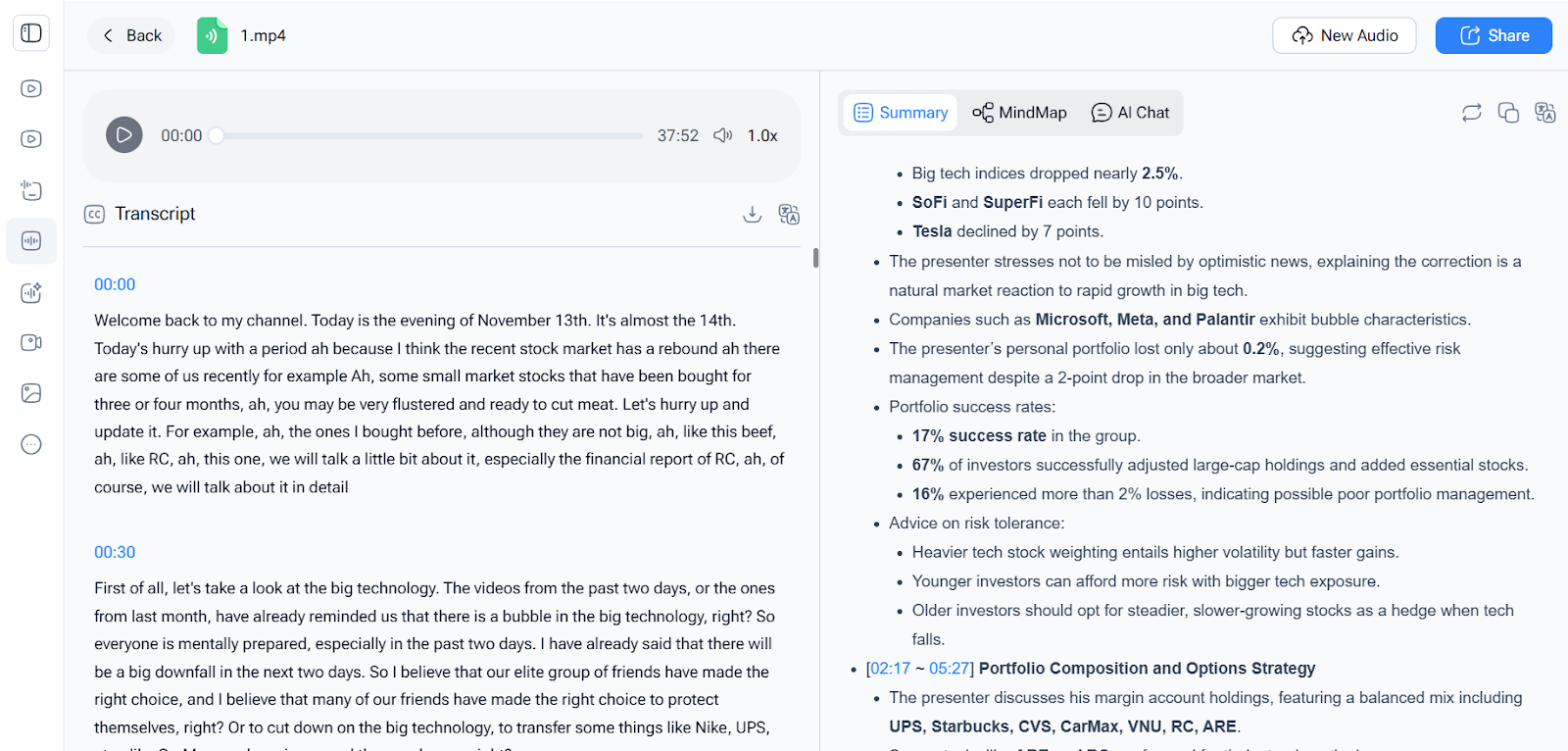 Once NoteGPT finishes, I skim the transcript, mark key quotes, and clean up small errors. Even with minimal corrections, it's still dramatically faster than doing it manually.