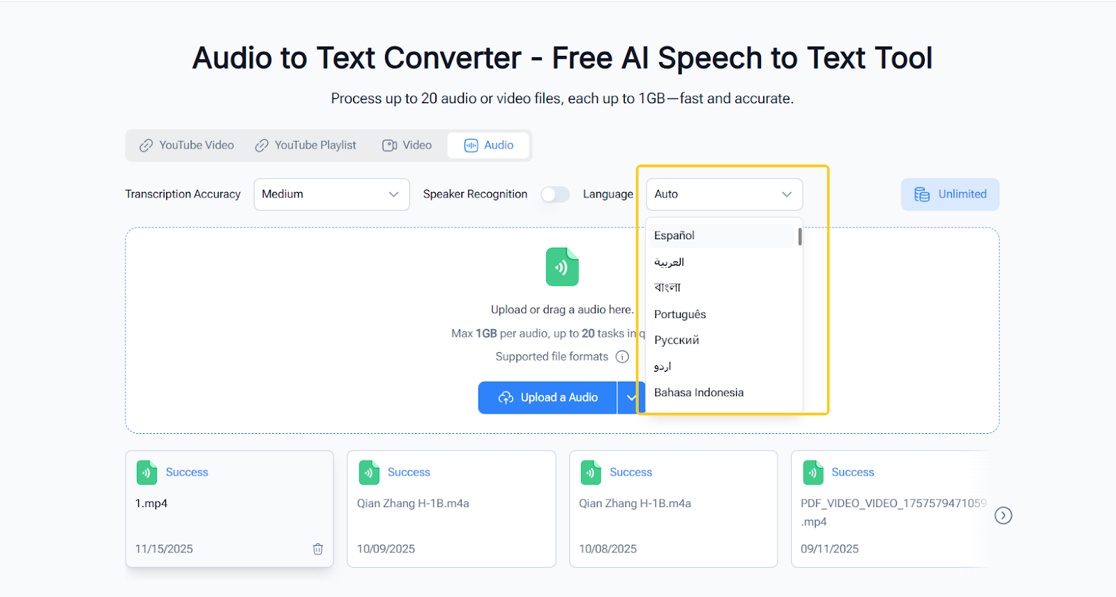 (NoteGPT Audio to Text Converter with Multi-Language Support)