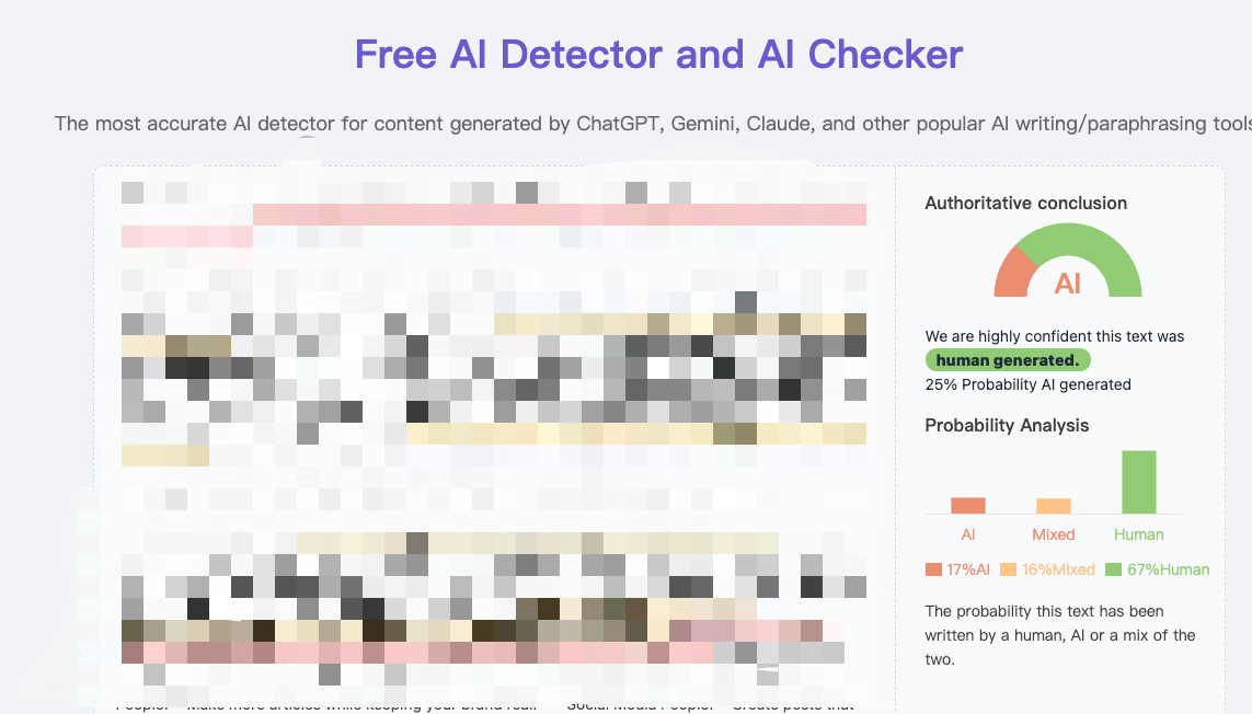 MyDetector leads in AI content detection, offering a free, precise tool to distinguish human from machine-generated text across formats like PDF, Word, PPT, and TXT. This AI content detection powerhouse delivers real-time results, scanning for patterns such as repetition and natural phrasing with high accuracy. Users from educators to marketers rely on its seamless uploads and instant feedback to maintain content integrity.