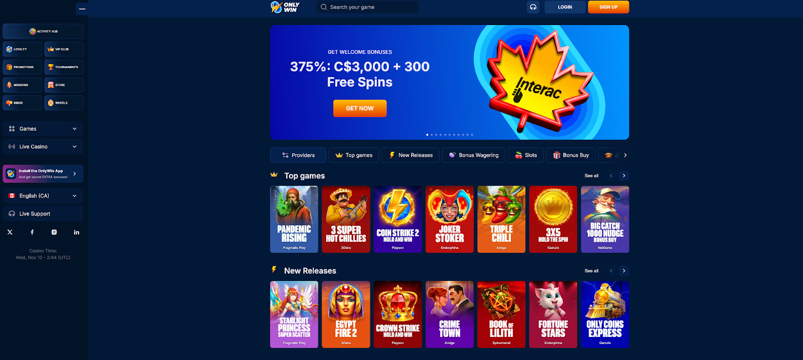 #2. OnlyWin - Top Instant Withdrawal Online Casino Canada