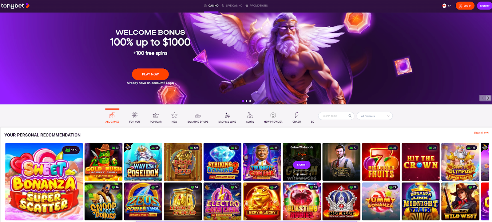 #3. TonyBet - Leading Same Day Withdrawal Casino