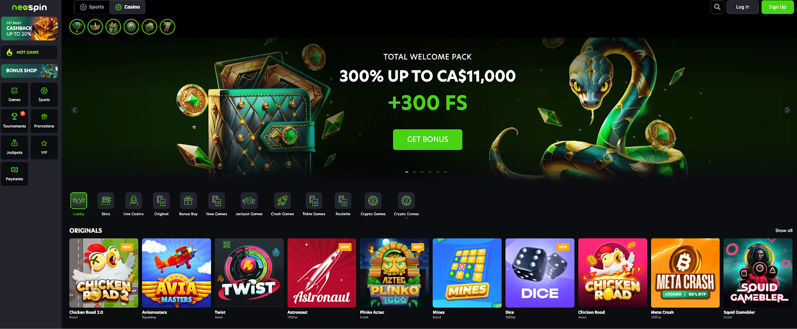 #7. NeoSpin - No Fee Fast Withdrawal Casino