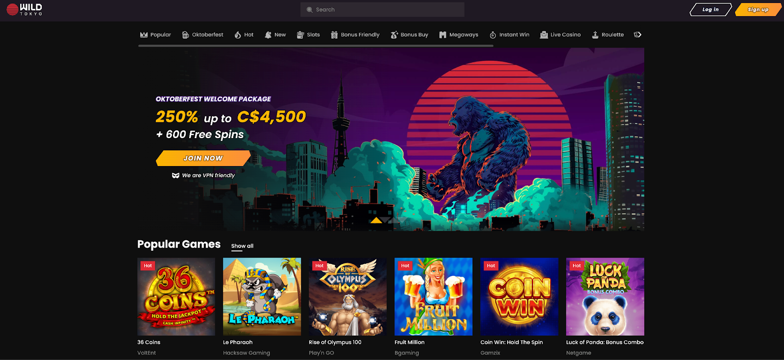 Wild Tokyo offers a legal and secure experience for local players. It beats out most other providers with its payment variety, making its offering of fast e-wallets, crypto, and Interac a reliable choice for any player.