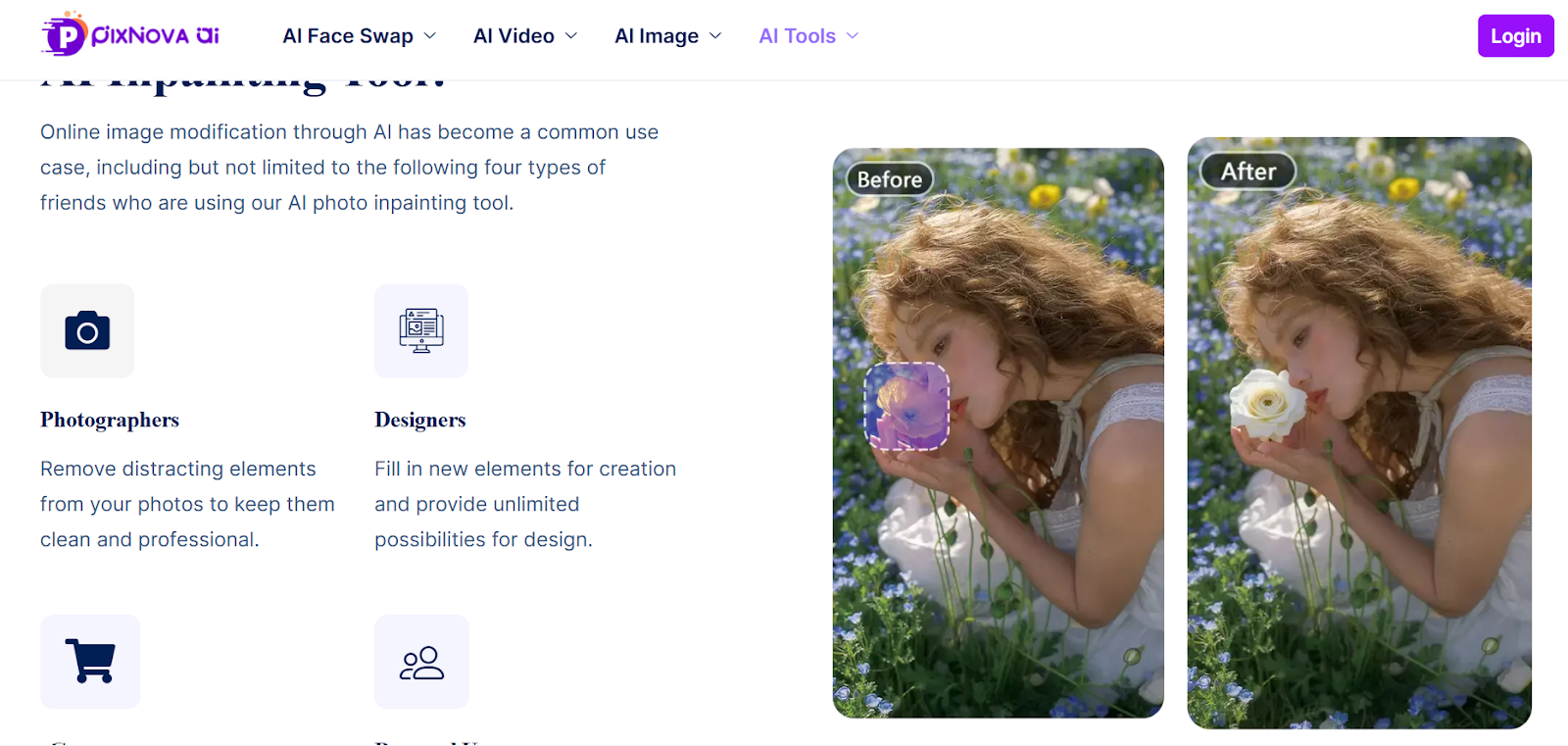 PixNova is one of the most popular names in free AI inpainting. It’s a web-based tool that lets you remove, repair, or modify image parts instantly.