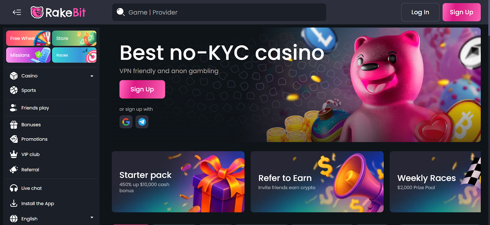 Rakebit has quickly gained attention for its privacy-first approach, offering no KYC sign-ups and lightning-fast withdrawals. The crypto casino caters to both casual gamers and live bettors, featuring a balanced mix of slots, table games, and crypto-based sports betting. Rakebit’s minimal verification process and transparent payout system make it a standout choice for players who prioritize anonymity and convenience.