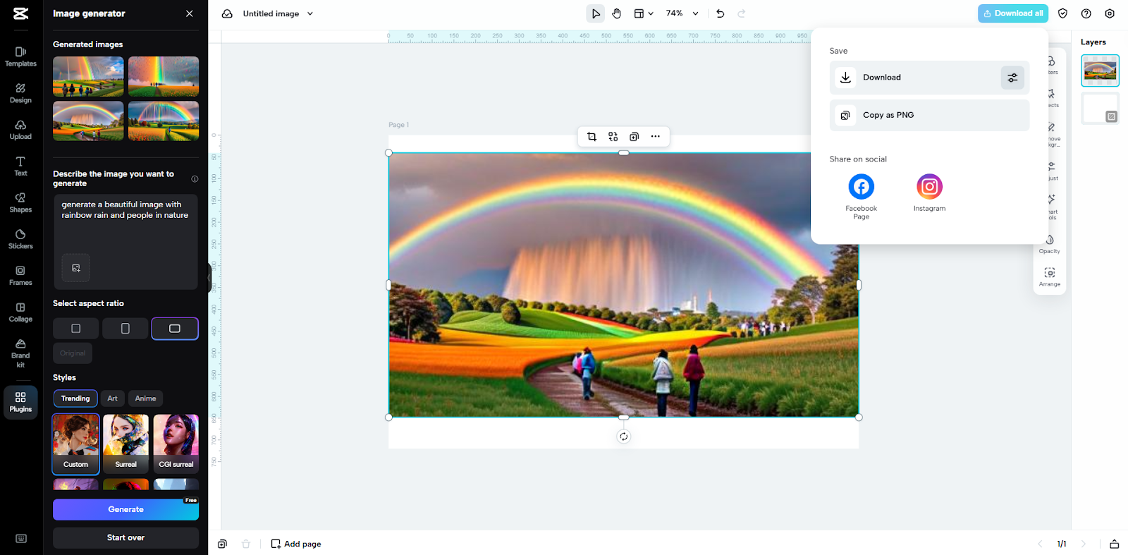 When you’re satisfied, select "Download all" at the top right corner. Choose "Download" to fine-tune format, size, and quality before saving. You can also copy your styled image as PNG for quick use.