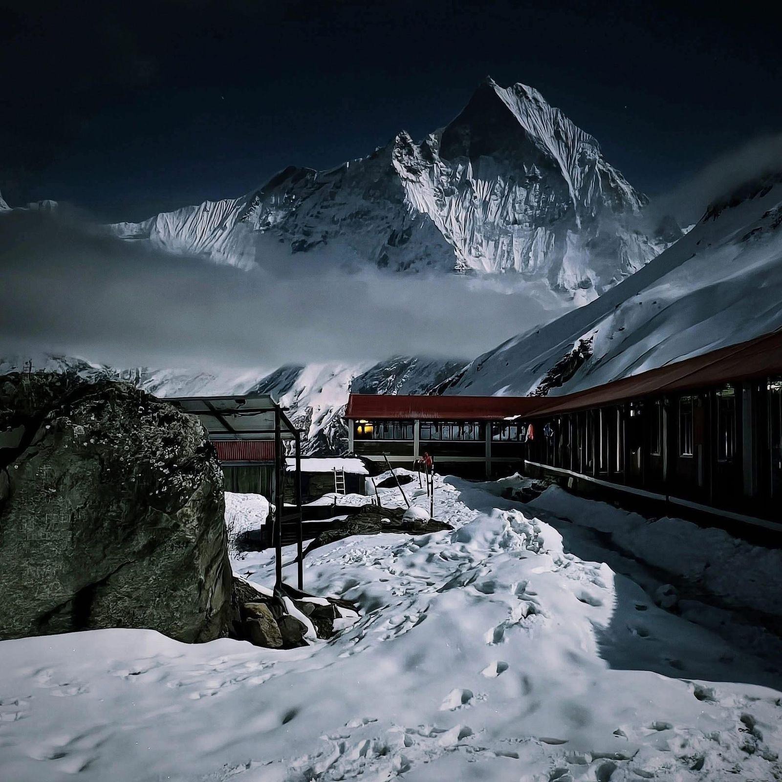 On the 7 Days Annapurna Base Camp Trek, Base Camp and surrounding ridges offer sunrise over Annapurna I and other peaks. Also, good viewpoints near settlement areas offer great dusk color.